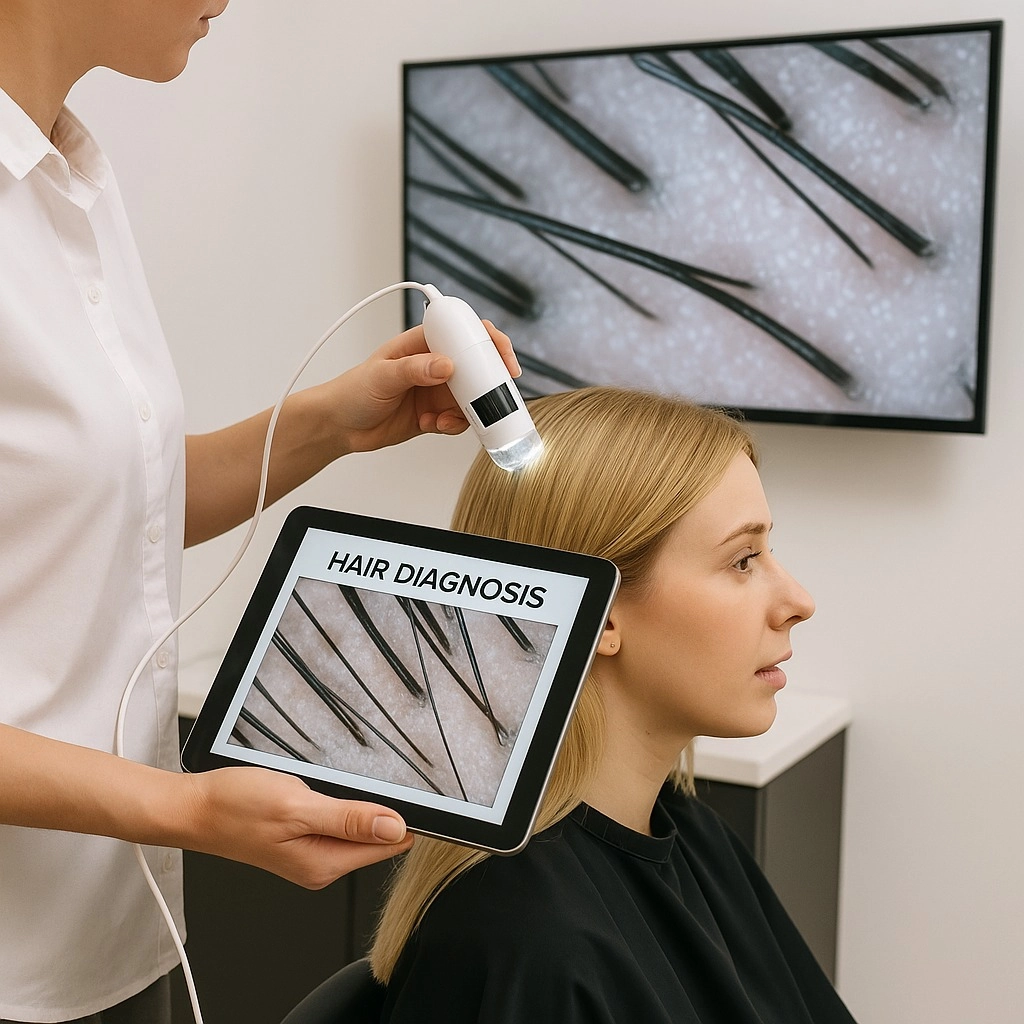 Descubre lo que tu cabello necesita desde la raÃz. Nuestro diagnóstico capilar profesional analiza en profundidad el estado de tu cuero cabelludo y fibra capilar, permitiéndonos ofrecerte soluciones personalizadas. Cada tratamiento está diseñado para restaurar, proteger y realzar la salud natural de tu cabello. Sentirás la diferencia desde el primer cuidado: más fuerza, más brillo, más tú.